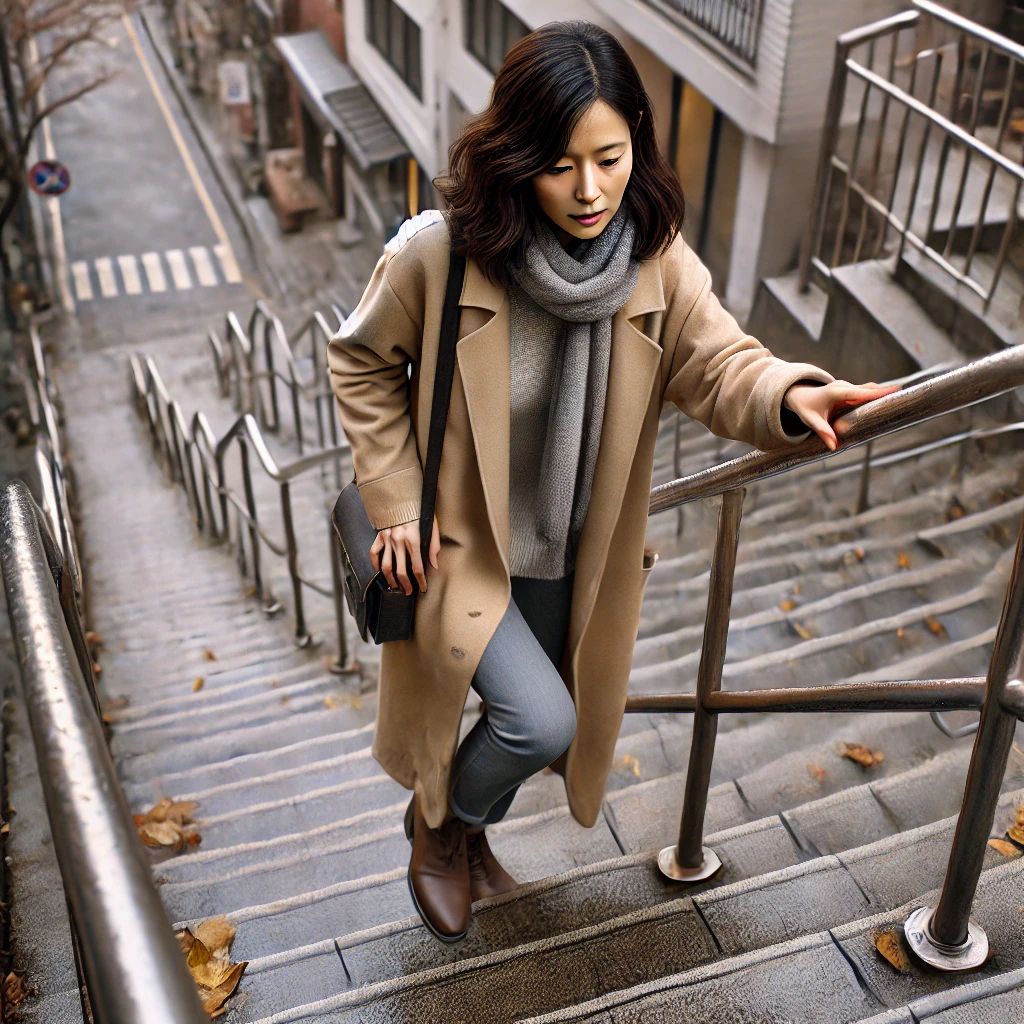 - 자세: 낮은 스텝(계단이나 스텝박스)에 한 발을 올리고, 다른 발도 천천히 올립니다. 이 운동은 다리 근육의 근력과 균형 감각을 함께 향상시키는 데 매우 유용합니다.