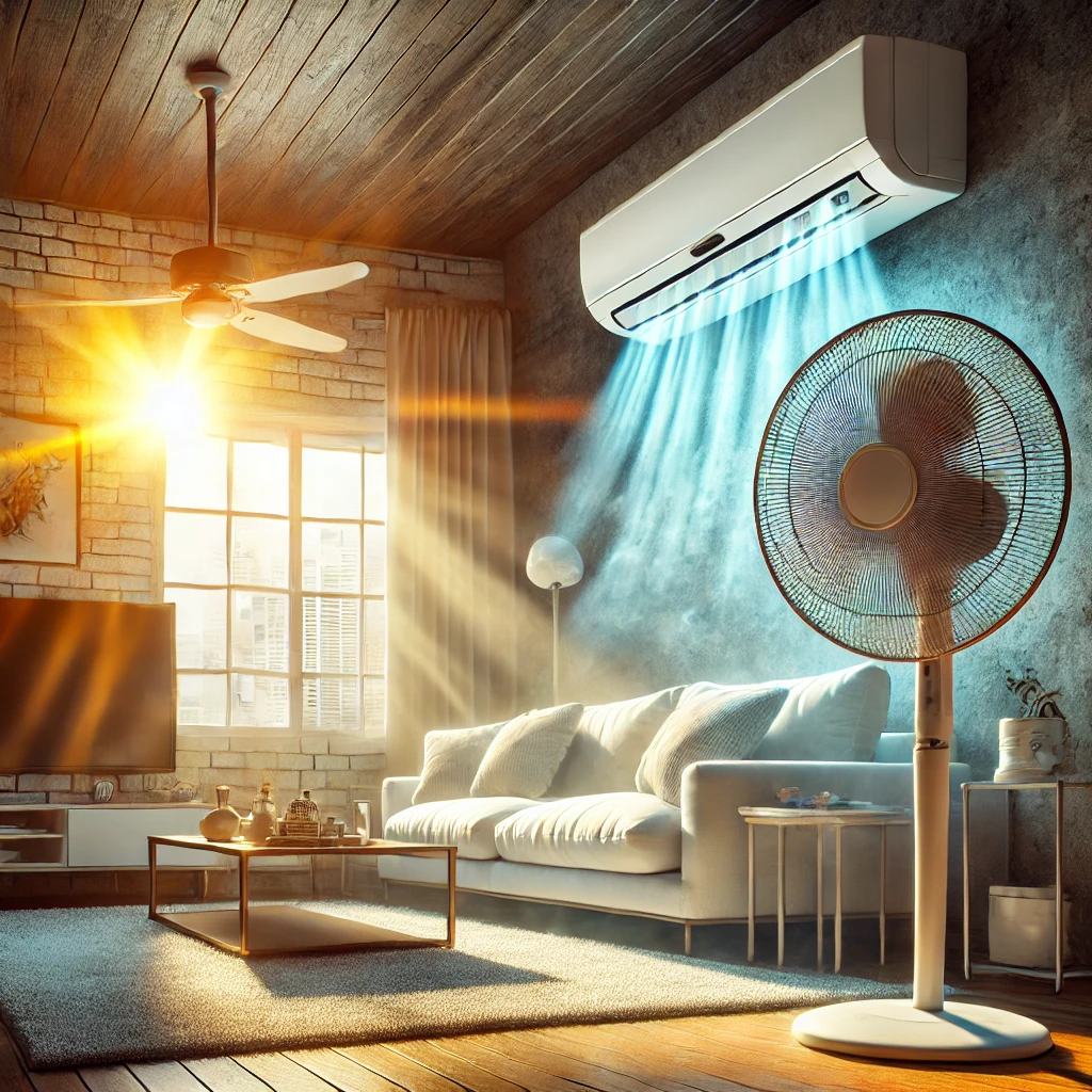 선풍기는 전기 소모가 적고, 공기를 순환시켜 체감 온도를 낮추는 데 효과적입니다. 에어컨과 함께 사용하면 더 효율적으로 실내 온도를 조절할 수 있습니다.