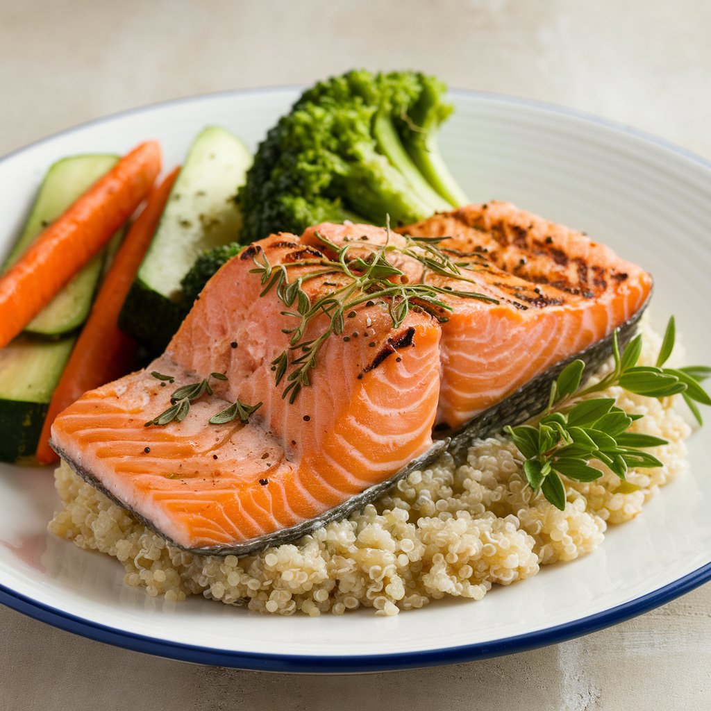 - 구운 생선: 연어, 브로콜리, 고구마