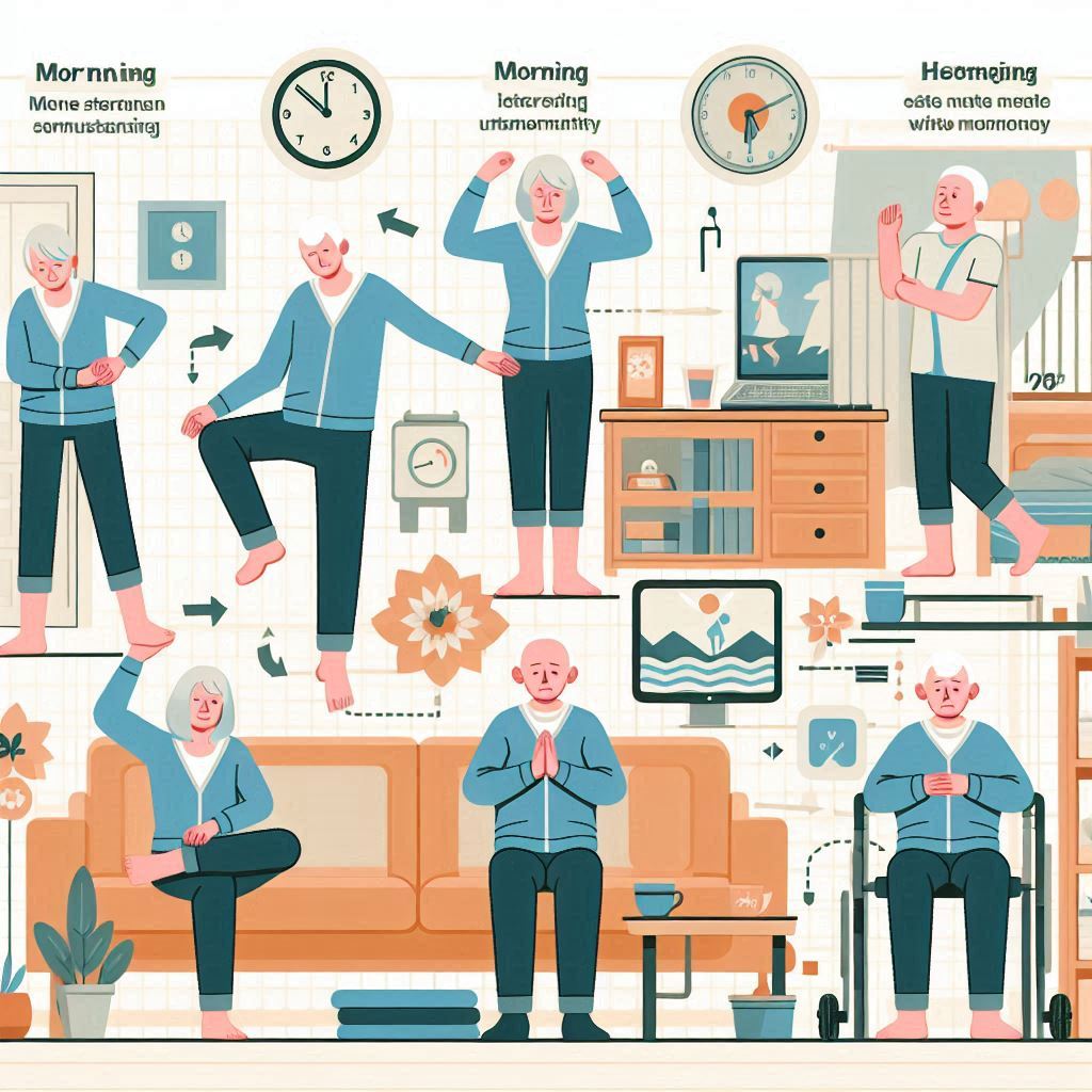 이를 위해 앉은 상태에서 팔을 들어 올리는 연습, 앉았다 일어서기, 벽에 기대어 균형 잡기 등의 운동을 포함합니다.