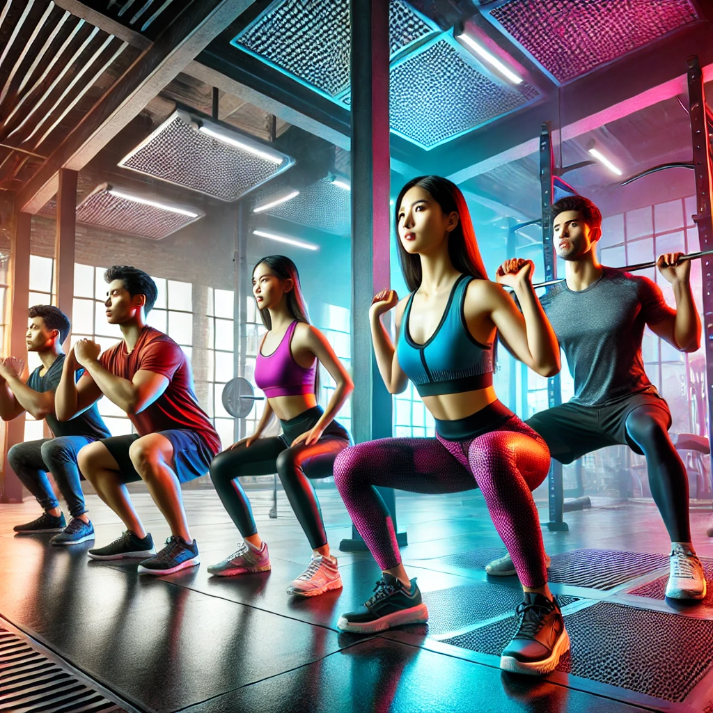• 올바른 스쿼트 자세: 다리는 어깨너비로 벌리고 발끝은 약간 바깥쪽을 향하게 합니다. 무릎이 발끝을 넘지 않도록 주의하며 천천히 무릎을 굽혀 내려갔다가 올라옵니다. 허리는 곧게 펴고 복부에 힘을 주어 자세를 유지합니다.