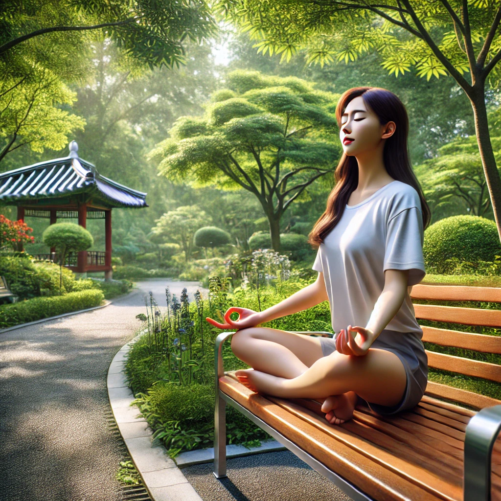 명상과 함께하는 깊은 호흡은 또한 신체의 긴장을 풀어주고, 스트레스를 완화시켜 줍니다.