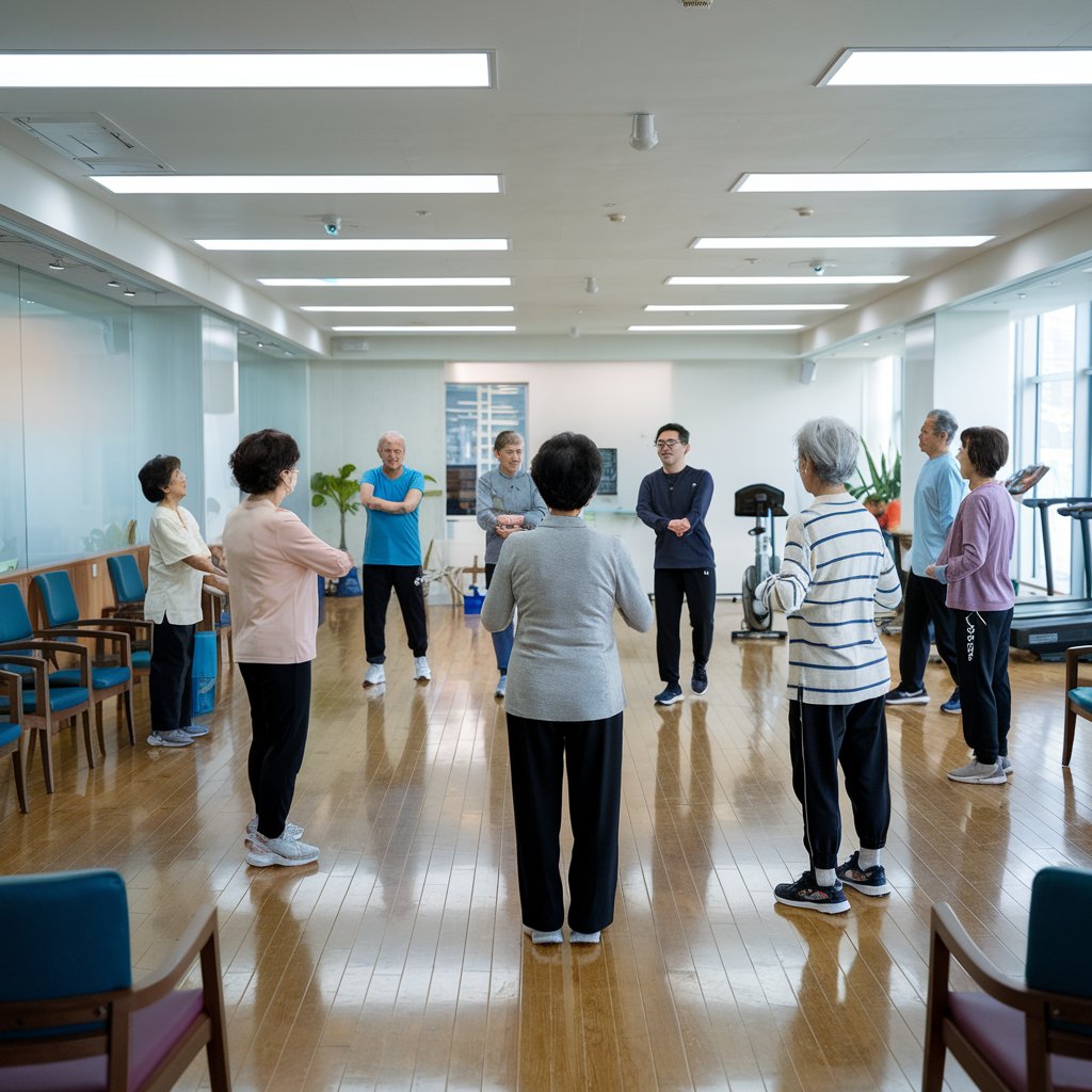 • 탄력 밴드 운동: 탄력 밴드를 사용해 팔과 다리 근육을 강화하며 운동 강도를 조절합니다.