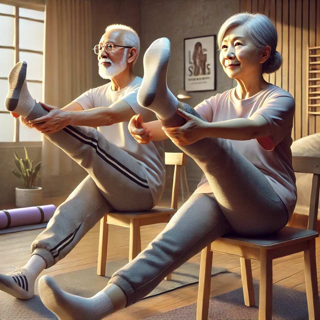 • 운동 방법: 의자에 앉아 다리를 곧게 펴고 바닥에서 살짝 들어 올립니다. 이 상태로 5초간 유지한 후 천천히 내립니다. 이 동작을 10회 반복합니다.
